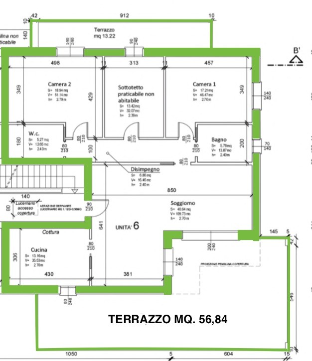 Terrazza - 2° piano | 56 Mq | 17 Mqc |