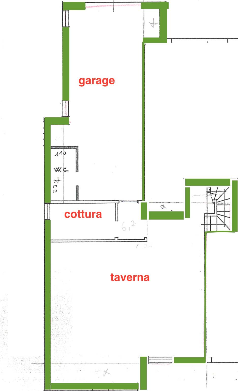 PIANO SEMINTERRATO: Si accede tramite scala interna e troviamo la taverna molto ampia con caminetto, una zona cucina, lavanderia- bagno e il garage di mq. 30